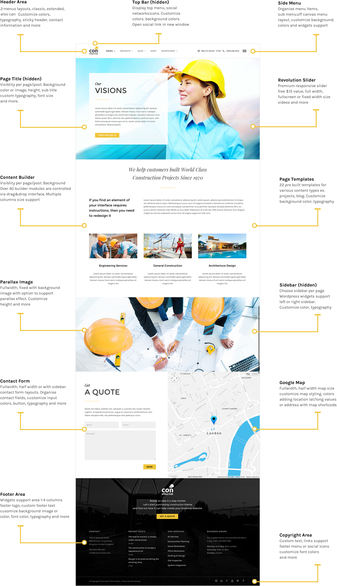 We have carefully created a lot of sample pages to show you the powerful of Constructor WordPress Theme. It’s really built especially for construction & Architecture company. You can select sample demos pages below to see the power of it yourself